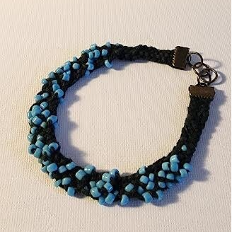 Slip on beaded bracelet with light blue beads. Kumihimo style. Size M/L